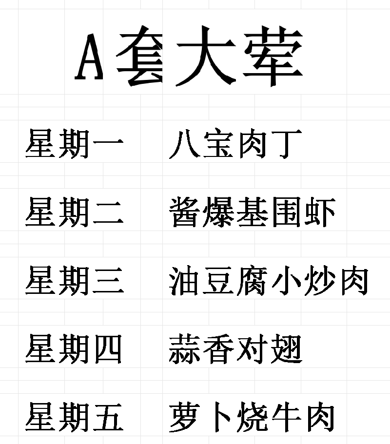 | 日期 | 菜品名称 | 菜品类别 | 菜品食材 | ||