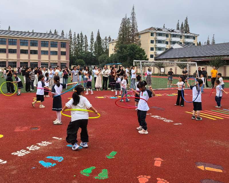 大课间中,孩子们有序进入操场。他们以班级为单位开展丰富多彩的体育活动:转呼啦圈。孩子们动作整齐、精神抖擞,展现出良好的身体素质和团队协作能力。家长们纷纷举起手机记录下这活力四射的瞬间,脸上洋溢着欣慰与自豪。