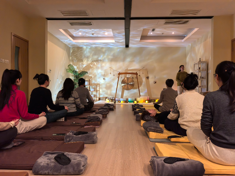 太阳岛度假区内的专属疗愈空间早已布置妥当,成为女教师们远离喧嚣的 “心灵港湾”。活动伊始,柔和的暖光中,数十支蜡烛静静燃烧,散发着淡雅的熏香,瞬间抚平了大家连日来的疲惫。在专业导师的引领下,女教师们围坐成圈,闭上双眼,伴随着导师手中打击乐器发出的清脆空灵声响——木鱼轻敲、铜铃摇曳,节奏舒缓而治愈,引导着大家专注于呼吸与身心联结。远离课堂的忙碌与琐碎,不必思虑教案与学生,只在光影、香气与乐声中放松肩颈、沉淀思绪,收获了内心的松弛与平和,以更从容的心态拥抱生活。