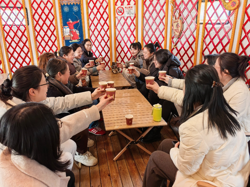 午后的蒙古包内暖意融融,女教师们围坐一堂,手捧热气腾腾的特色民族奶茶,茶香与奶香交织萦绕。大家借着这温馨惬意的氛围,畅谈教育工作中的点滴感悟,分享生活里的趣事乐事,欢声笑语不断,感受着相聚的美好。