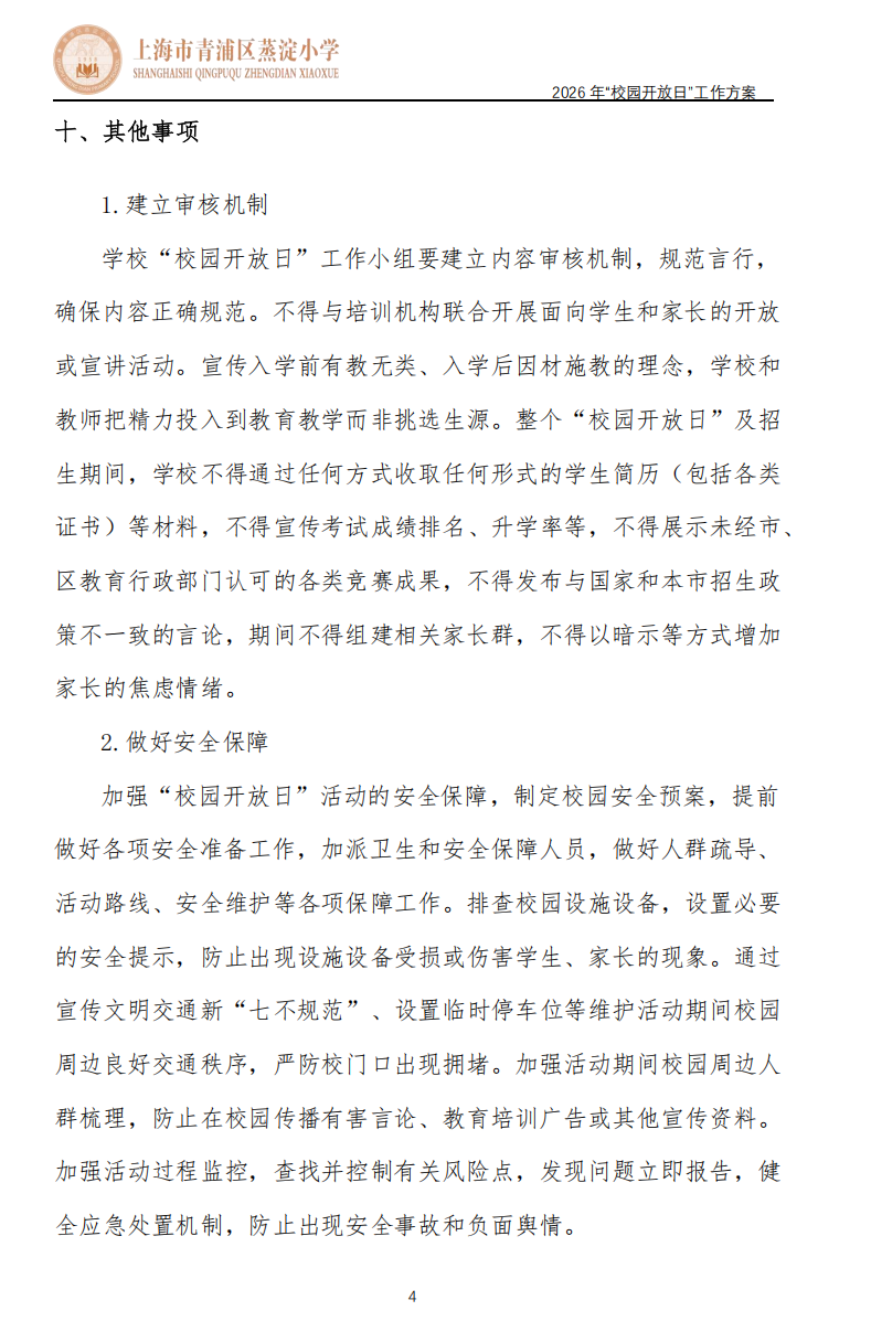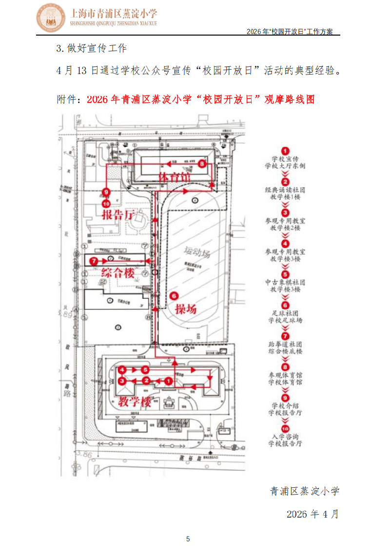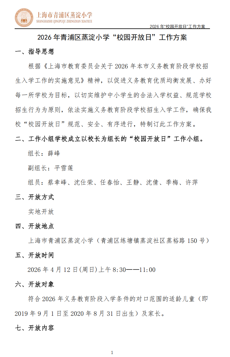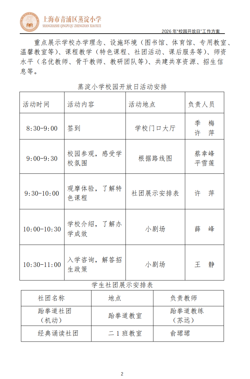 2026 年青浦区蒸淀小学“校园开放日”工作方案